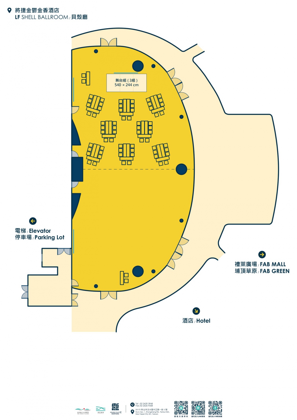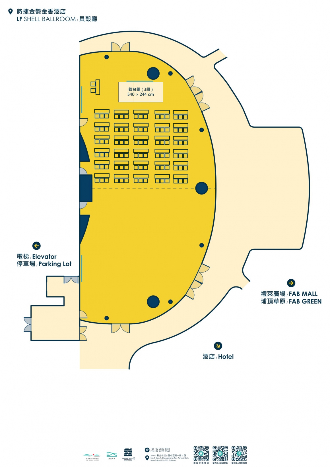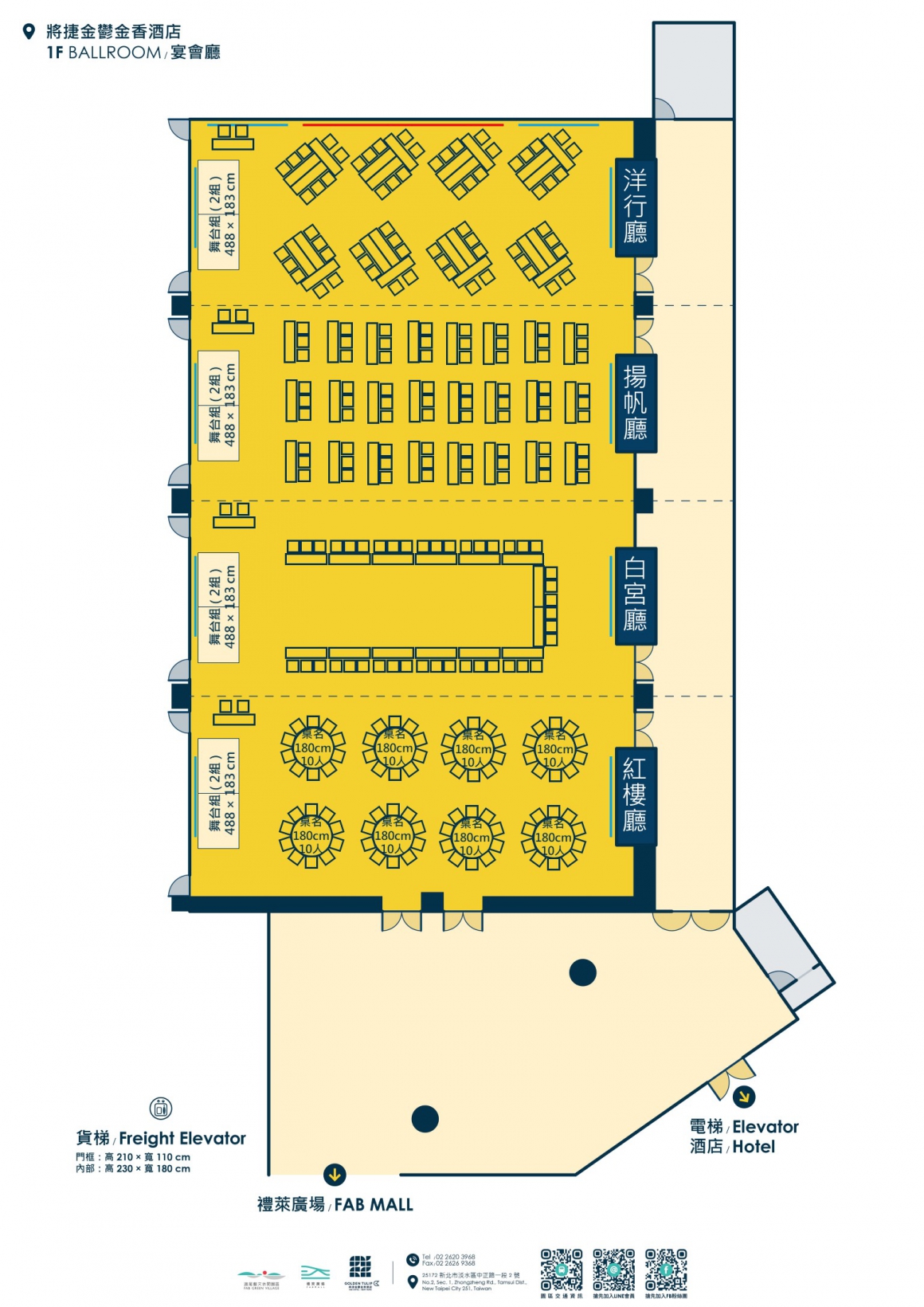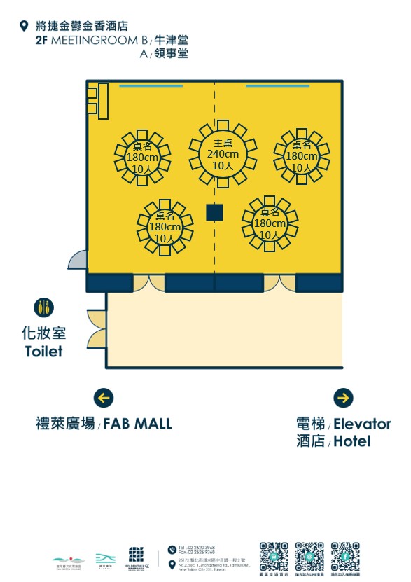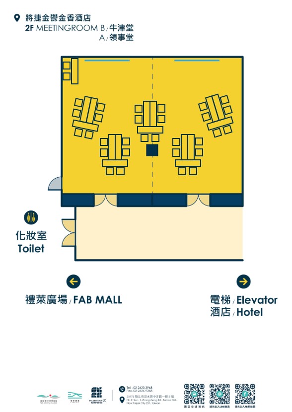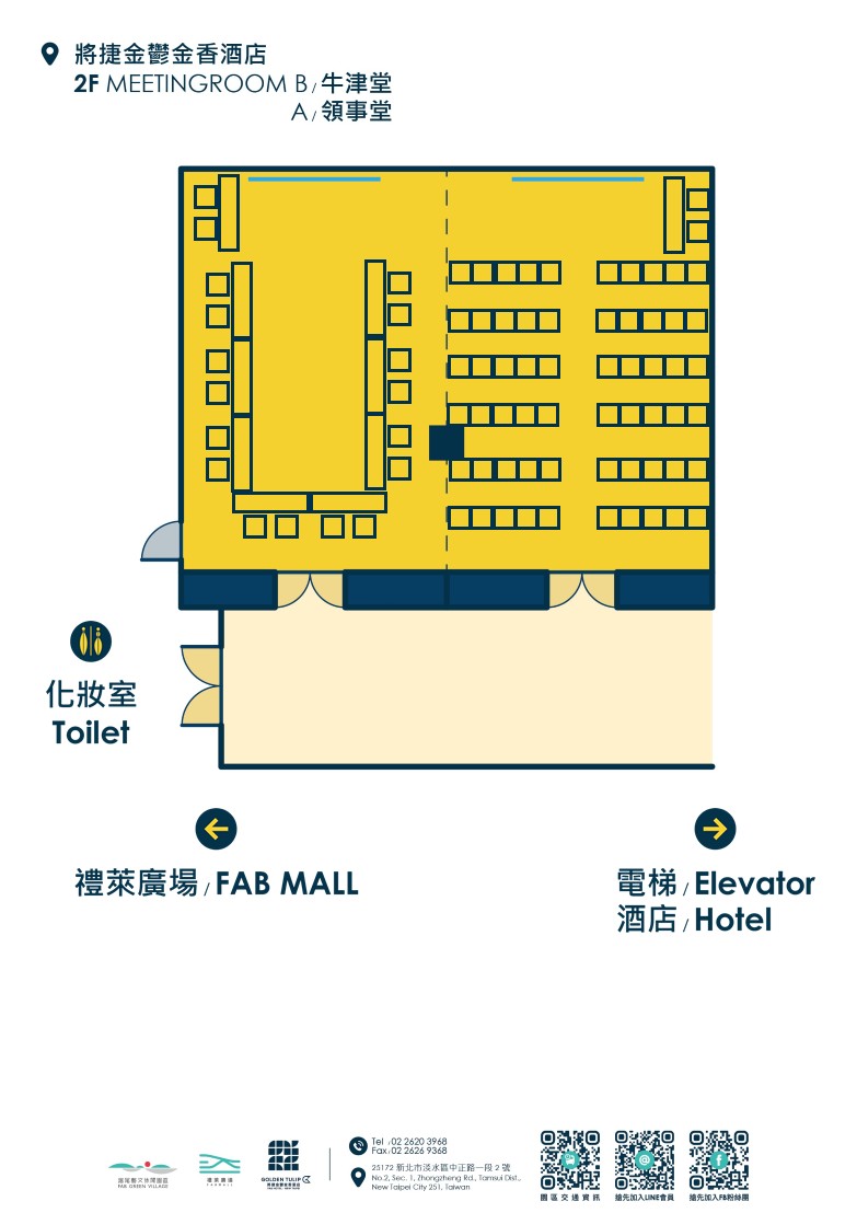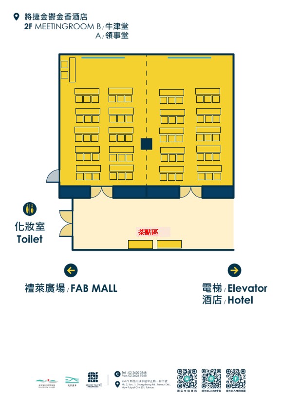 因場次活動關係,敬請事先來電預定場勘、洽談時間預約專線:+886-2-2620-3968