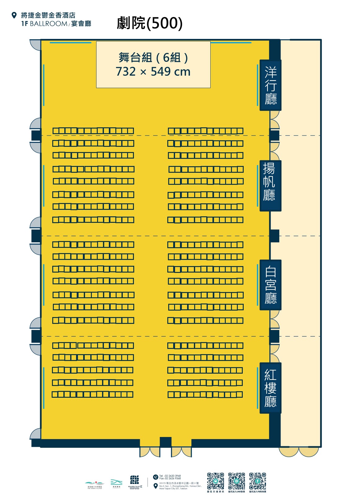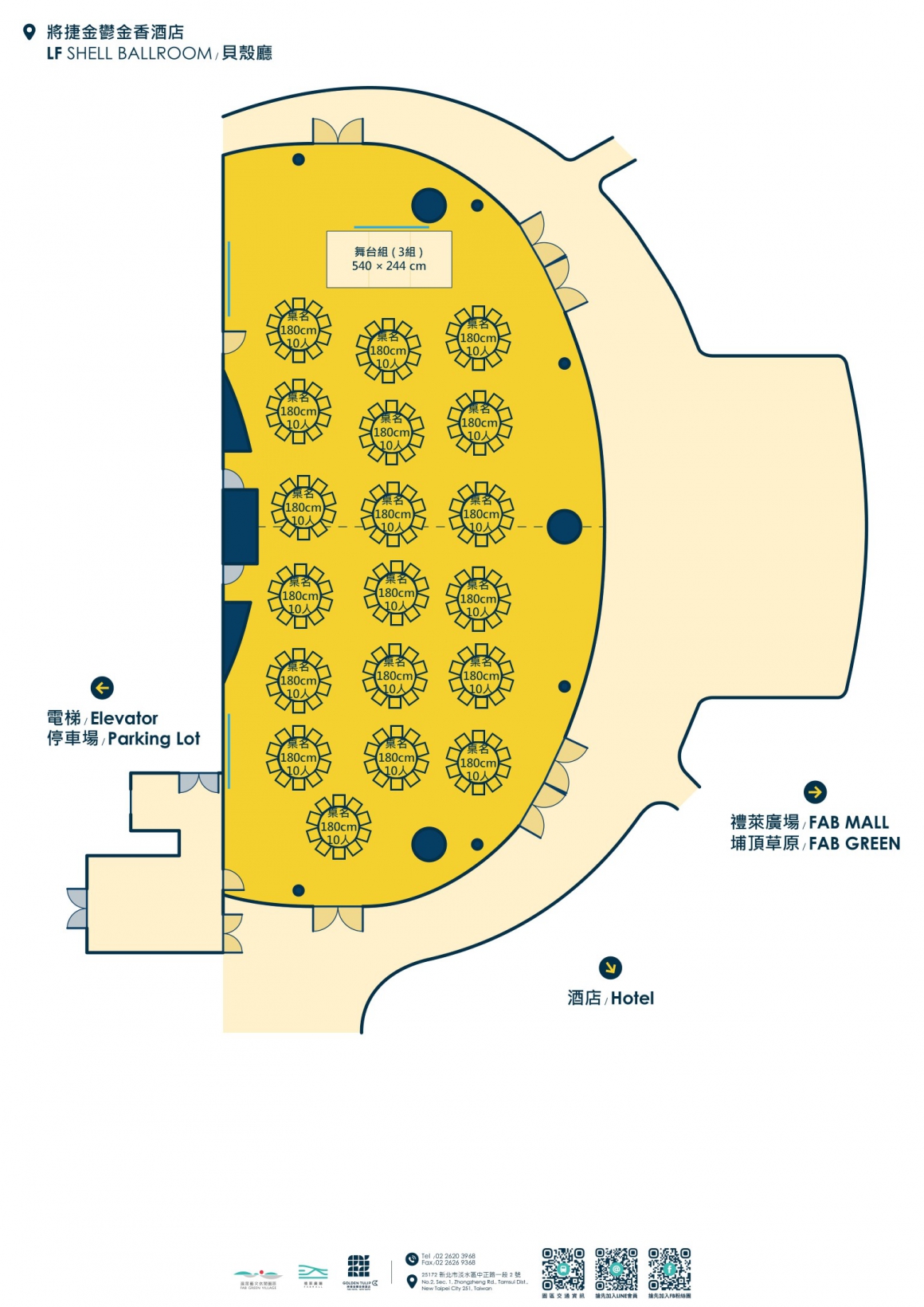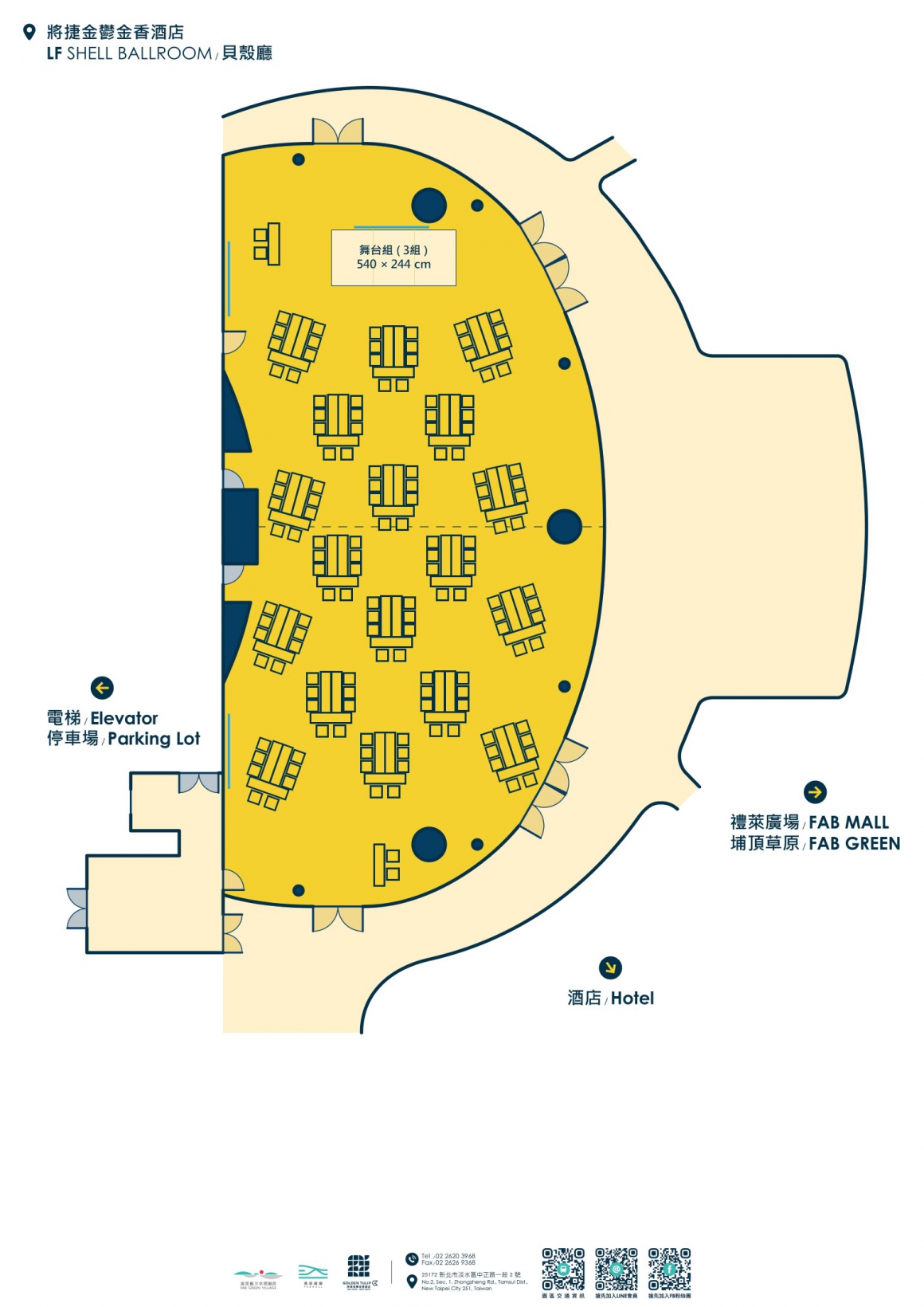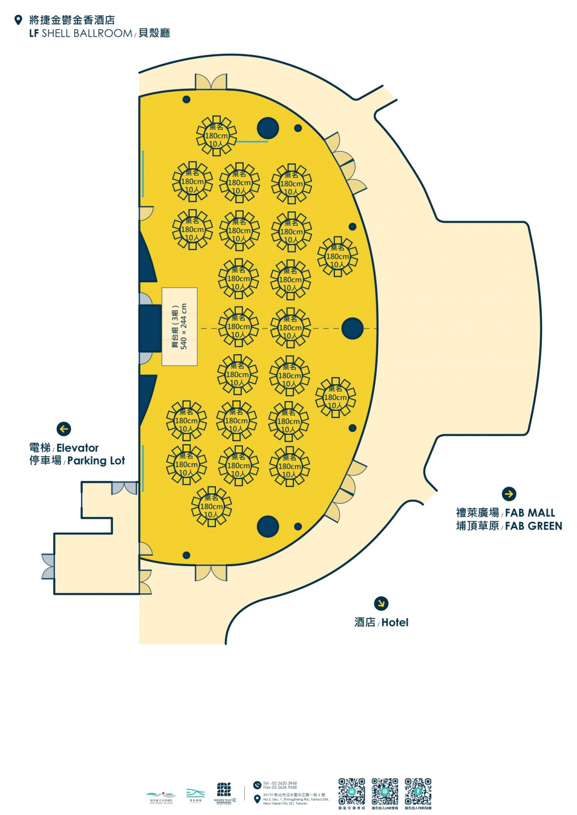 因場次活動關係,敬請事先來電預定場勘、洽談時間預約專線:+886-2-2620-3968