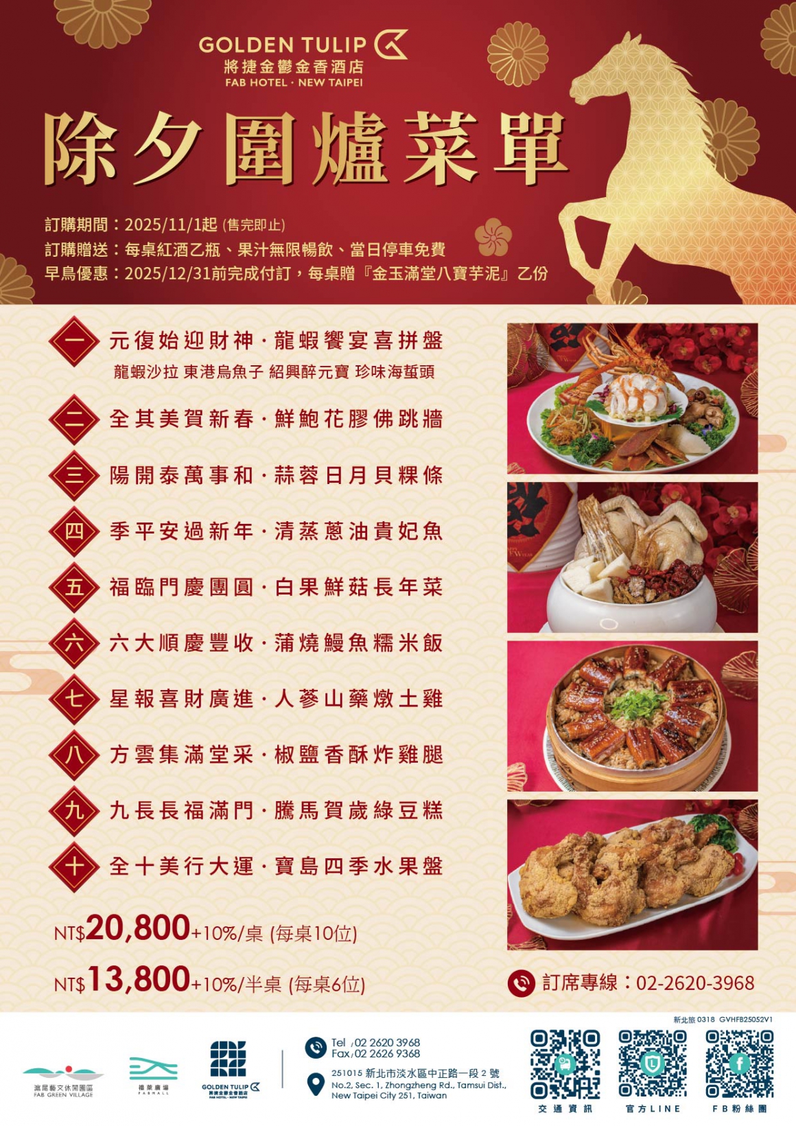 早鳥優惠:2025/12/31前完成付訂,每桌贈「金玉滿堂八寶芋泥」乙份