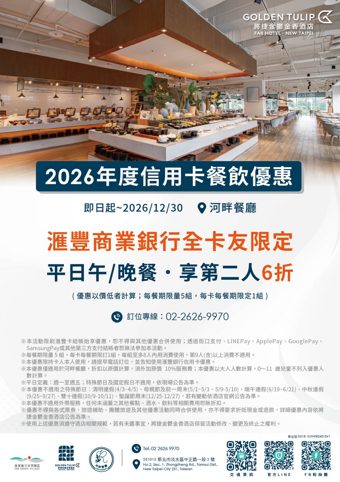 ※ 本優惠限持卡人本人使用,請提早電話訂位,並告知使用滙豐銀行信用卡優惠。