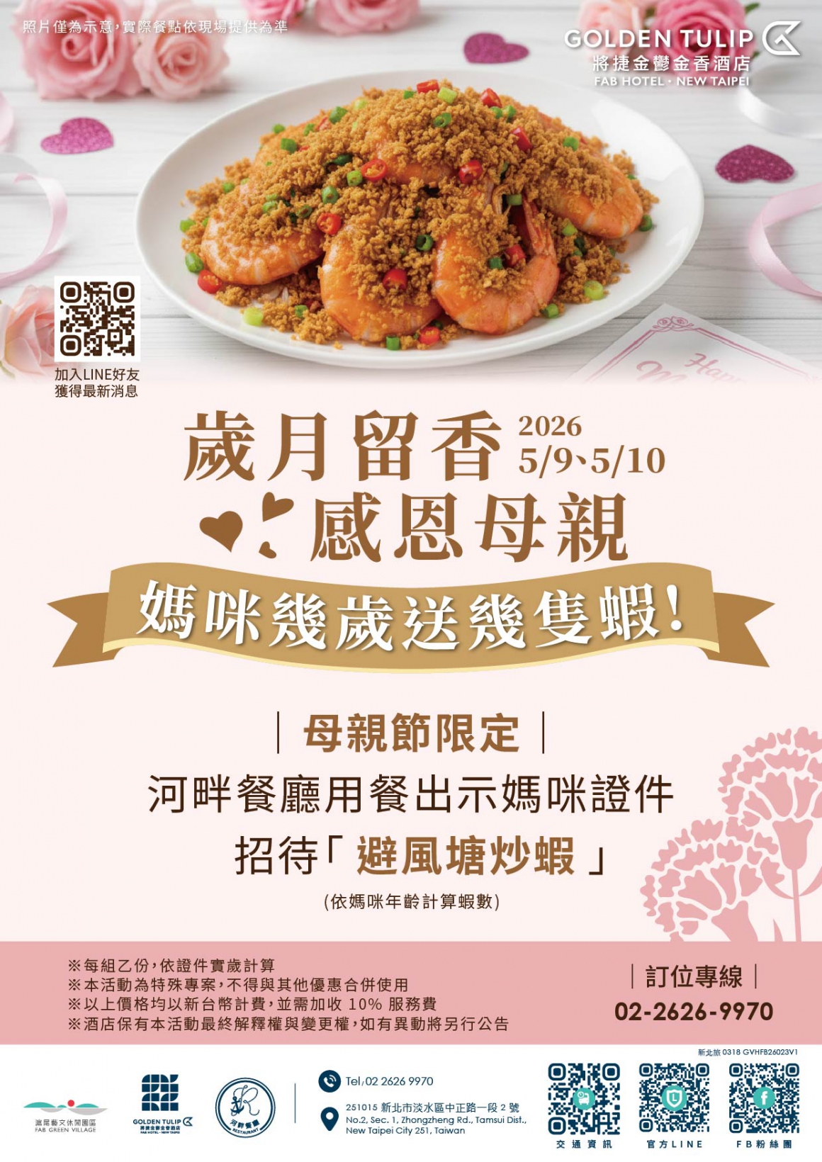 河畔餐廳用餐出示媽咪證件,招待「避風塘炒蝦」(依媽咪年齡計算蝦數)